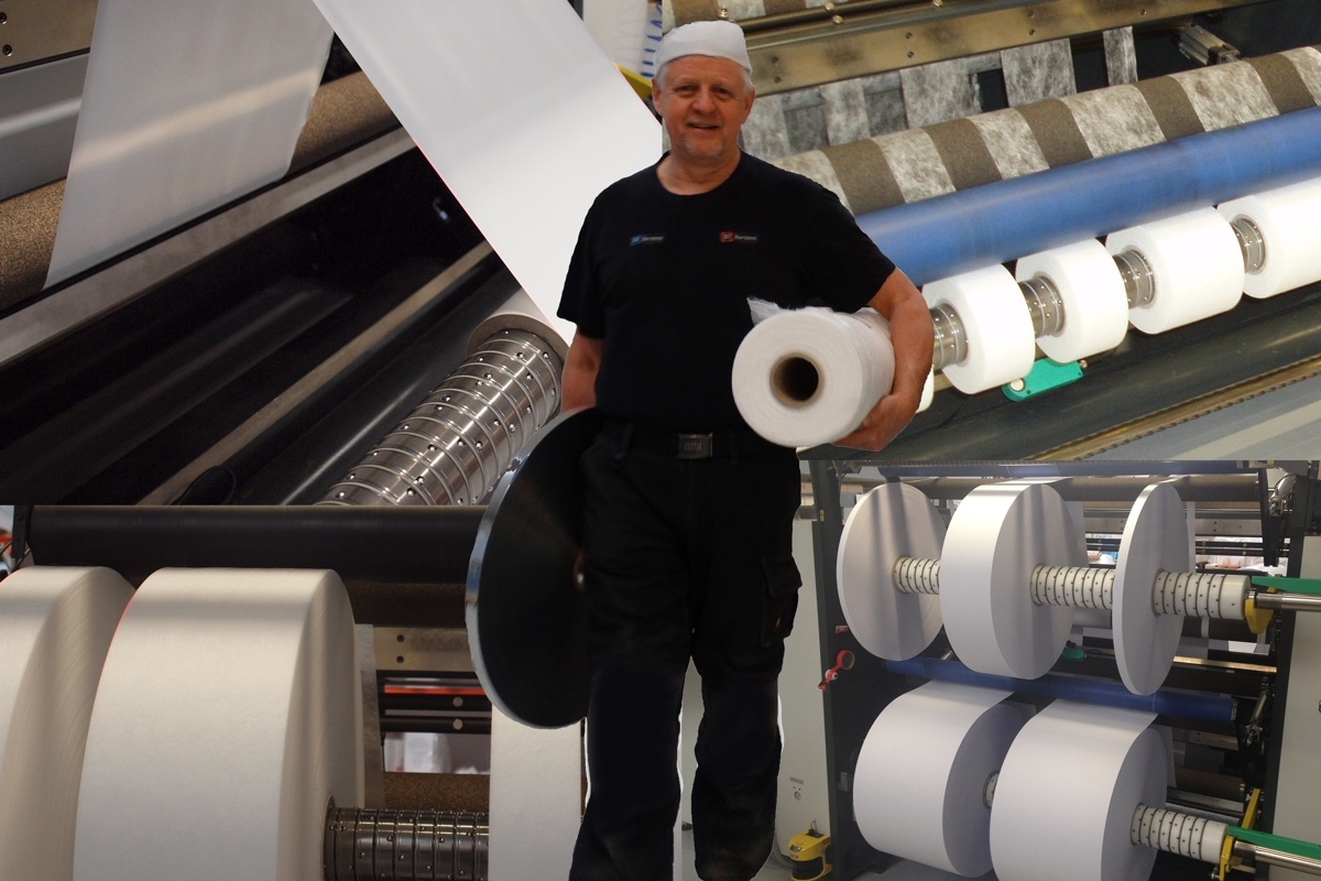Det ruller for os, som vi siger. Vi skærer i alle slags materialer tynde og tykke. Vi kan håndterer ruller i alle størrelser, vi skærer helt ned til 10mm ruller og op til 2500mm ruller.
